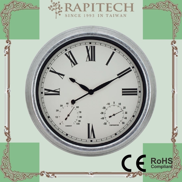 15" Metal Clock with built in Thermometer & Hygrometer (3 in 1)